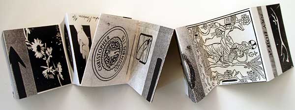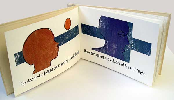 Icarus II , 2004; calico and board covers, Japanese bound; inkjet printed from photographed woodcuts on Somerset 300gsm; signed limited edition of twelve; 39 x 24cm; £75, £2.50 UK / £5 overseas p&p.